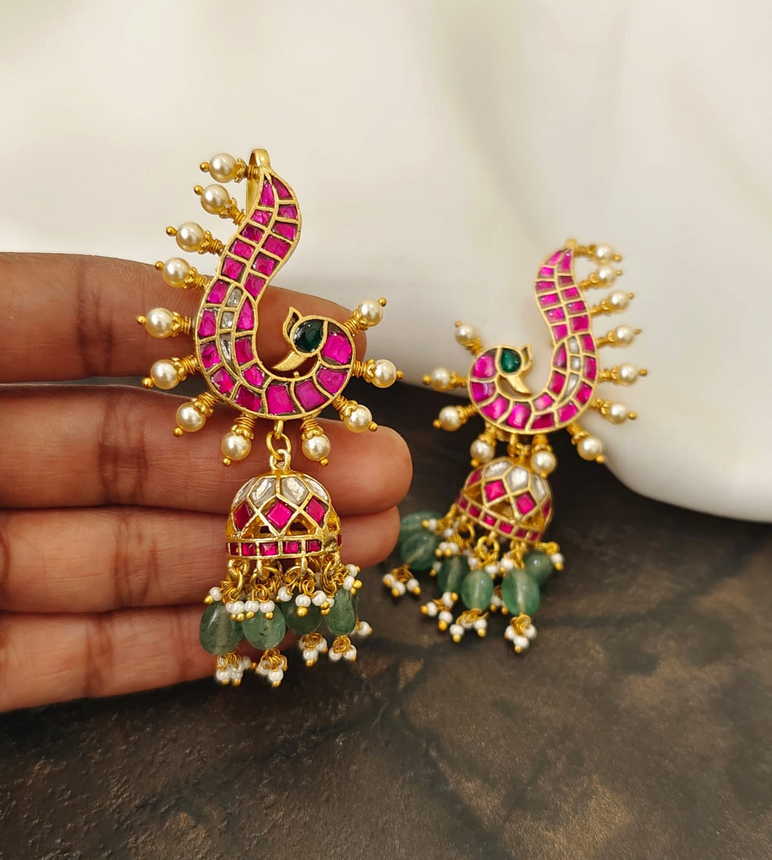 Jadau earrings represent a pinnacle of traditional Indian craftsmanship, where precious gemstones are meticulously set...