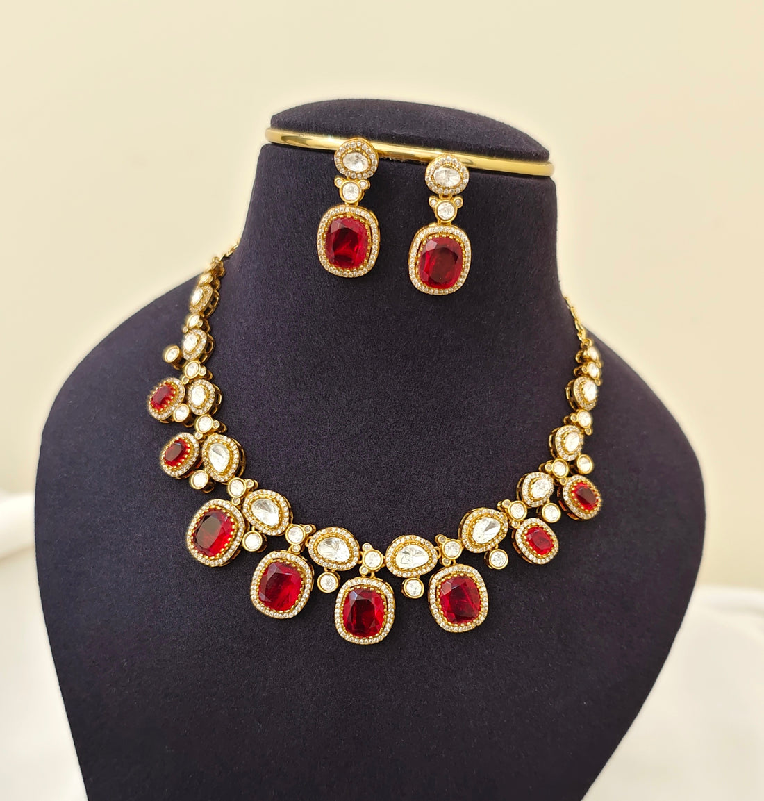 Elevate your bridal collection with this exquisite Jadau Kundan necklace set, a masterpiece of traditional...