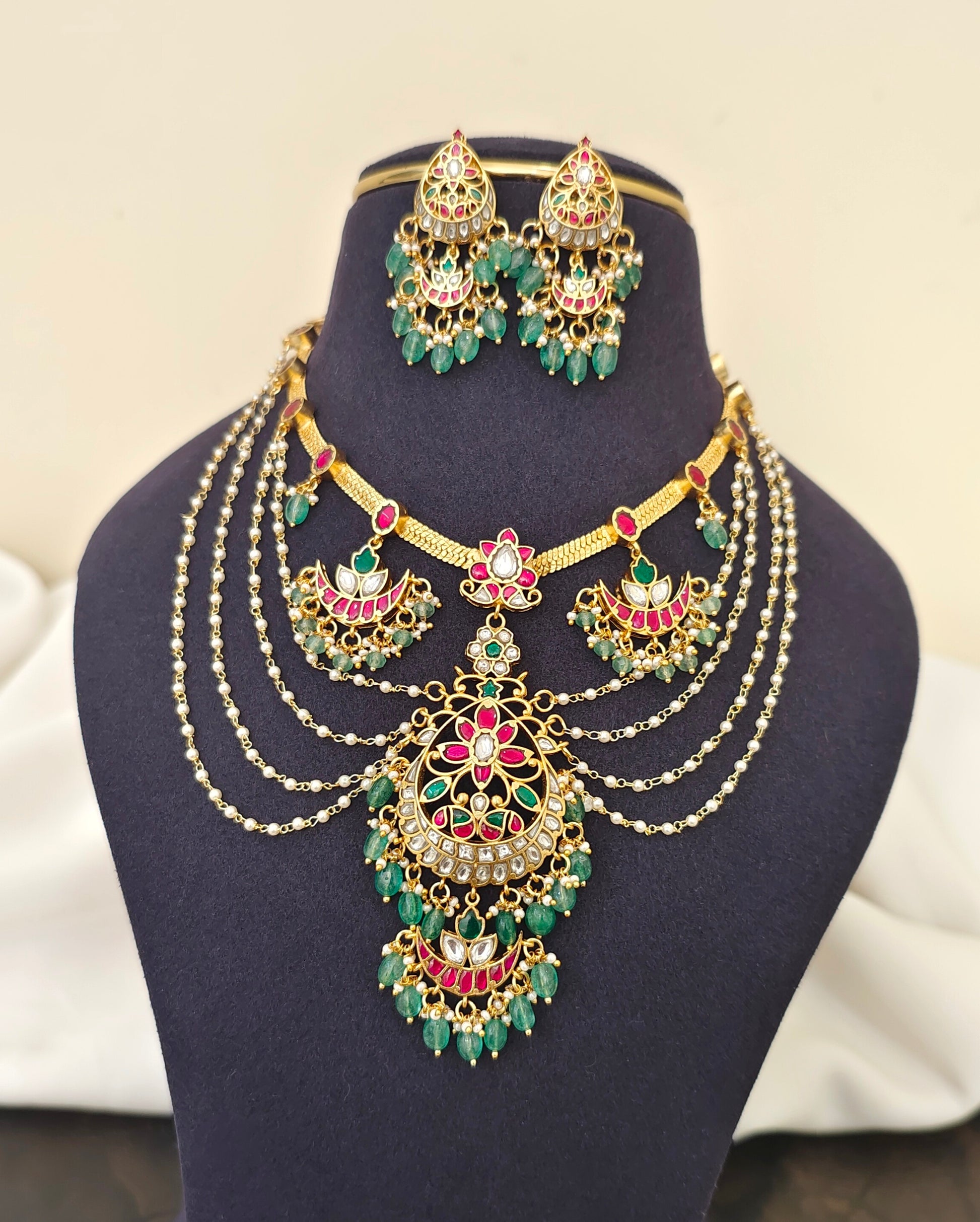 Elevate your jewelry collection with this sophisticated gold layered neckset, designed to deliver timeless elegance with contemporary flair. The multi-strand composition creates dimensional depth, allowing you to wear it as a statement piece or layer it with existing jewelry for personalized styling. Crafted with attention to detail, each layer complements the others seamlessly, making this versatile neckset suitable for both everyday wear and special occasions. The gold finish ensures lasting radiance and pairs effortlessly with any wardrobe, from casual to formal attire.